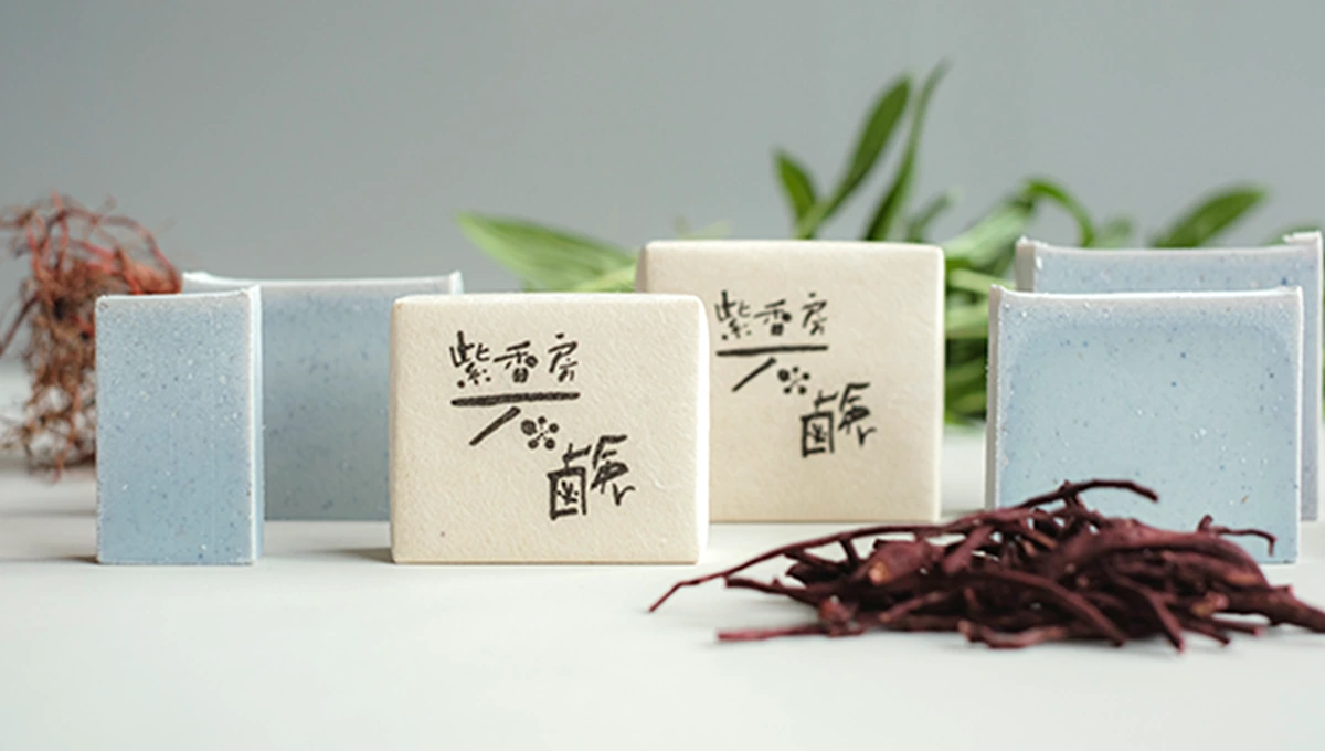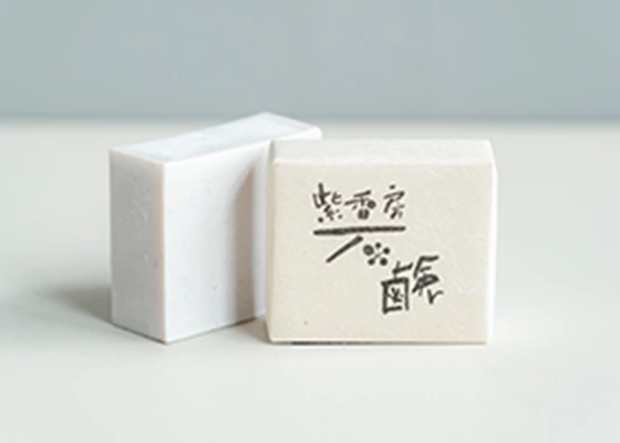 無精製の圧搾法で作られたナタネ油に紫根の成分が溶け出す工程(企業秘密)と、苛性ソーダ水溶液に紫根の粉を加え、エイジングケアに有効な紫根の薬用成分であるシコニン類と保湿成分であるグリセリンを、しっかり抽出し何も取り除かずに丸ごと石鹸に閉じ込めた独自の製法となっています。酸化防止剤や保存料などを含んでいないため、使用期限が製造から13か月です。